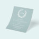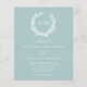 A coral wreath frames the monograms of the bride and groom at the top of this budget minimal sea glass coastal invitation with white text.