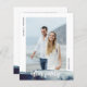 Simple, modern, budget elopement or smaller wedding announcement and post-wedding reception or party invitation with photo. The front features a watercolor frame with delicate gold threads (this is a digital effect) and the title "after party" written in a trendy script with swashes and your first names and wedding date in modern typography. On the back, personalise your wedding photo announcement, add a reception or party invitation and sign your names in a signature-like script.