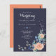 Budget Navy Blue Coral Floral Wedding Invites Postcard