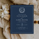 Budget Navy Blue Crest Monogram Wedding Invitation Flyer
