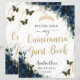 Welcome guests in style with this budget-friendly navy blue floral guest book sign, featuring rich navy blue flowers, shimmering gold accents, and elegant butterflies. Printed on a single paper sheet, this sign is perfect for guiding guests to leave their warm wishes at Quinceañeras, Sweet 16s, 18th Birthdays, Princess Parties, Bat Mitzvahs, Baptisms, Christenings, and more!