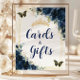 Budget Navy Blue Floral Quinceañera Cards and Gifts Sign | Paper Sheet with Gold Accents & Butterflies
