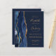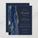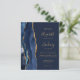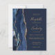 The left-hand edge of this elegant modern wedding invitation features a navy blue watercolor agate border trimmed with faux gold glitter. The customisable text combines gold-coloured handwriting, copperplate and italic fonts on a navy blue background. Add additional details on the back, along with a QR code to help your guests visit your wedding website.