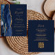 Budget Navy Blue Gold Agate QR Code Wedding Invite