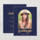 BUDGET Modern Navy Blue Gold Arch Photo Graduation Party Announcement Invitation featuring your photo and our stunning chic modern typography and geometric arch in a classic navy blue and saffron yellow gold. Perfect for announcing your graduation and party! **Our BUDGET paper is smaller and more delicate, but still beautiful!** If you need assistance or matching items, please contact us at cedarandstring@gmail.com.