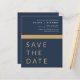 Budget Navy Blue Gold Save the Date Elegant