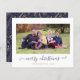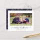 BUDGET Rustic Navy Blue Script Merry Christmas Photo Holiday Card featuring your favourite photo and a simple, yet elegant script Merry Christmas greeting. The back is a festive Christmas navy blue with a fun pattern of gold foil style holiday branches and greenery. Perfect for your holiday cards this year! **Our BUDGET paper is smaller, lighter, and more delicate, but still beautiful! Don't forget the envelopes!** If you need assistance or matching items, please contact us at cedarandstring@gmail.com.