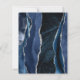 The left-hand edge of this elegant modern wedding invitation features a navy blue watercolor agate border trimmed with faux silver glitter. The customisable text combines pale silver grey calligraphy script and sans serif font on a burnt orange background. The reverse side features a matching navy blue and silver agate design.