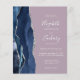 The left-hand edge of this elegant modern wedding invitation features a navy blue watercolor agate border trimmed with faux silver glitter. The customisable text combines white handwriting, copperplate and italic fonts on a mauve background. The reverse side features a matching navy blue and silver agate design. NOTE: Envelopes are not automatically included with these budget invitations, so please remember to choose the "white envelopes" option!