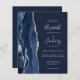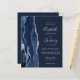 The left-hand edge of this elegant modern wedding invitation features a navy blue watercolor agate border trimmed with faux silver glitter. The customisable text combines handwriting, copperplate and italic fonts in light silver grey on a navy blue background. The reverse side provides space for wedding details on a solid navy blue background, along with a QR code guests can scan to visit your website and RSVP.