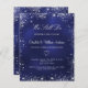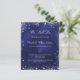 A modern, elegant vow renewal invitation. Navy blue background decorated with faux silver glitter sparkles. The blue colour is uneven. Personalise and add your names and party details. White coloured letters.