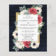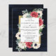 Budget Rustic Navy Barn Wood Elegant Red and Gold Floral White Wedding Invitation