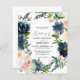 Save money on formal invitations with this smaller invitation that has an option for envelopes. Get your guests ready for the amazing wedding with this Navy, Dusty Blue & Pink Floral wedding invitation.