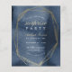 This chic surprise party invitation features a faux gold foil geometric frame and gold glitter dust on a navy blue watercolor wash with modern typography. As part of the budget selection here on Zazzle, these invitations come in limited sizes and paper stocks. If you need a different size or paper stock, this design can be transferred to a standard 5x7 format using the design transfer tool for more options.