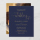 Budget Navy Gold Heart Script Photo Wedding Invite