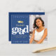 Announce to the world that your favourite grad has reached their milestone with this stunning, simple, modern, personalised budget announcement invite. Bold, graphic, white typography and faux gold foil cap icon overlay a navy blue background. On the right hand side, add a photo of your choice. Personalise the custom text with your graduate’s name, school name, date, and class year. On the back, add your personal note, next school they’re attending, party information, etc. Guaranteed to add stylish fun to their special occasion!
