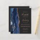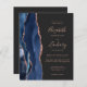 The left-hand edge of this elegant modern wedding invitation features a navy blue watercolor agate border trimmed with faux rose gold glitter. The customisable text combines rose handwriting, copperplate and italic fonts on a dark charcoal grey background. Add additional details on the back, along with a QR code to help your guests visit your wedding website.