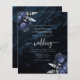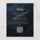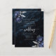 This elegant wedding invitation features navy blue floral bouquets set off with silver faux foil greenery in two corners, on a background image of navy blue watercolor agate. The customisable silver grey text combines serif, italic and handwriting fonts. The reverse side provides space for wedding details, along with a QR code guests can scan to visit your website and RSVP.