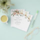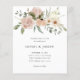 This simple, elegant budget wedding invitation features a boho rustic bouquet of watercolor flowers and greenery in neutral shades of peach terracotta and ivory, on a white background.