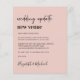 Budget-friendly blush pink change of wedding venue announcement with "wedding update new venue" written in a mix of script and bold trendy typography (you can customise this to "new date," "smaller wedding," etc). Personalise your change of plans message, add your names in a signature-like script and add your wedding website on the reverse side or leave blank.