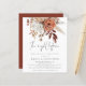 PLEASE NOTE There are two paper options to choose from for this size (4.5 x 5.6”) in the Budget range. For this product, I would highly recommend the semi-gloss which is a 110 gsm card stock, similar in thickness to a postcard. The Satin option is a much thinner paper 80gsm. The default is set to semi-gloss. *** NOTE there is ONE per sheet. Budget The Night Before Terracotta Rustic Florals Rehearsal Dinner Invitation. Elegant florals and berries and grasses in soft terracotta brown and cream shades flow down from the top. The Night Before is in a handwriting style script. Easily personalise the text to your own details.