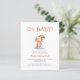 This cute baby shower invitation features a watercolor axolotl holding an umbrella in the rain, below the words "Oh BABY!" in orange hand printing font. Personalize the text with the name of the mom-to-be in orange and the details in charcoal gray sans serif font. The reverse side provides space for diaper raffle, books for baby, and registry details, along with a convenient QR code guests can scan to visit the registry.