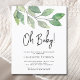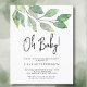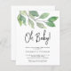 This budget Oh Baby! baby shower invitation is decorated with simple watercolor greenery and modern script typography.