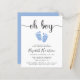 Cute budget-friendly minimal boy baby sprinkle invitation with "oh boy" in a stylish script with swashes and a pastel blue watercolor of baby feet. Underneath you can easily personalise the baby sprinkle details.