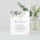 This Budget Greenery Olive Branch Botanical Bridal Shower Invitation - features lush greenery and golden olive branches, golden drops with modern script text. The reverse side of the bridal invitation is elegant dark olive green.
