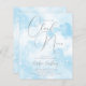 An elegant, whimsical and dreamy bridal shower invitation featuring watercolor clouds in pastel blue sky and clouds featuring a calligraphy script saying "she's on cloud nine".
