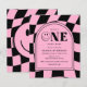 Budget One Happy Babe Happy Face Pink Girl 1st Birthday Invitation.
