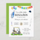 Budget Our Little Golfer Green Cart Golf Birthday is a great golf invitation idea for a kid's birthday party! This golf birthday invite features party supplies, balloons, colourful party banners, a golf cart, golf clubs, golf balls, a golf hat, and a golf bag. Funny invitation for a golf birthday party theme.