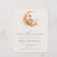 This cute boho baby shower invitation features a sweet watercolor teddy bear asleep on a crescent moon above the words "over the moon" in brown handwriting script. Personalise the text with the name of the mum-to-be in script and the details in sans serif font on a beige background. The reverse side provides space for diaper raffle, books for baby, and registry details, along with a convenient QR code guests can scan to visit the registry. Ideal for a gender-neutral baby shower.