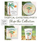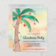 This Christmas Party Budget Invitation is decorated with a hand drawn decorated palm tree on a watercolor background.
