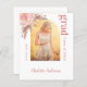 White background. Decorated with pampas grass and blush pink florals. Personalise and add your own photo of the graduate. Add year and school name. With the word: Grad written with large letters.