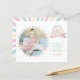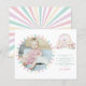 This pastel colour photo thank you card features a charming carnival theme, perfect for expressing gratitude after a kid's birthday celebration. The card includes a customisable photo section, framed with pastel stripes, for a personal touch. Beside the photo, vibrant illustrations of a ferris wheel, circus tent, and carousel in soft pastel hues add a festive and whimsical feel.