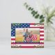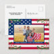Send Merry Christmas greetings to friends and family with this unique USA American Flag Christmas Card - USA American flag design modern red white blue design with holly and berries. Personalise with your favourite photo and family name. This patriotic Christmas card is perfect for military families, veterans, patriotic family christmas cards. COPYRIGHT © 2022 Judy Burrows, Black Dog Art - All Rights Reserved. Budget Patriotic Christmas Photo American Flag Postcard