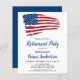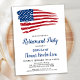 USA American Flag Military Retirement Party Invitations. This modern and trendy red white blue, stars and stripes, American Flag party invitations are perfect for a military retirement party, soldiers going away party, military deployments send off, military welcome home celebration, and military graduation events, as well as police officer retirement, state police department retirement party, law enforcement, firefighters, fire department and retired veterans. Personalise this american flag invitation with your soldiers, police or veteran event, name, and party details.