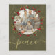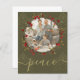 BUDGET Peace Christmas Wreath Photo Template holiday card from Ricaso - designed with holly berry wreath to frame your photograph - this green and red design is sure to be a hit with family and friends .. easy to add your own text and photo - give thanks this holiday with a personalised greetings card with a delicate typography