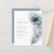A value for money BUDGET alternative on a smaller size 4.5 x 5.6” semi-gloss 110lbs weight, which is of similar thickness to a postcard (however is not suitable to use as a postcard.). PLEASE NOTE there is ONE per sheet. Peacock Feather Bridal Shower Invitation.. A beautiful peacock feather in shades of blue and teal turquoise decorates the right hand side and the words are aligned to the left. Easily personalise the text. A coordinating dusty blue is on the back.