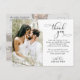 Budget, Modern Elegant Handwritten Script 2 Photo Affordable Cheap Wedding Thank You Postcard in Black and White. Send your nice thanks in style with your favourite wedding photos with our elegance wedding thank you cards! Stylish, minimalist wedding card template featuring 1 photo on the front and one (1) photo on the reverse side. "Thank you" text in a a beautiful cursive hand lettering swash tail font typography or calligraphy script. Easy to add your name and thank you message. If if you need assistance feel free to contact designer!
