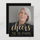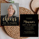 The front of this 70th birthday invitation features the guest of honour's photo with a gold-coloured text overlay. The word "cheers" appears in elegant gold-coloured calligraphy script, followed by "to 70 years" and the guest of honour's name and birthday in sans serif font. A dark screen helps make the text pop. Customise the reverse side with the name and party details on a black background. A great way to celebrate someone who's turning seventy! (NOTE: Envelopes are not included automatically with this budget invitation. To add envelopes to your order, please use the "Envelopes" drop-down menu.)