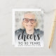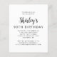 The front of this 90th birthday invitation features the guest of honour's photo with a black text overlay. The word "cheers" appears in elegant calligraphy script, followed by "to 90 years" and the guest of honour's name and birthday in sans serif font. A white screen helps make the text pop. Customise the reverse side with the name and party details on a white background. A great way to celebrate someone who's turning ninety! (NOTE: Envelopes are not included automatically with this budget invitation. To add envelopes to your order, please use the "Envelopes" drop-down menu.)