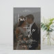 Simple modern handwriting signature calligraphy script multi photo BUDGET affordable wedding invitation with white text and black transparent overlay featuring bold bride's and groom's names. ++++++ Easy to personalise with your photo on the front side and 4 photo collage and your QR CODE (automatically generated with your URL link) to your website on the back side. +++++++++ This timeless wedding invite is suitable for minimalist casual wedding ceremonies and receptions.