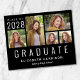 Budget-friendly black graduation announcement for him or her featuring a 5 picture photo collage and "Graduate" written across the bottom in large white capital letters. Add his or her class year, name and school or university in simple white typography.