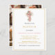 Modern floral roses filled Gold cross in the front with details of the invitation below.