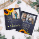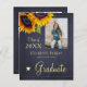 Rustic country style 4 PHOTO collage graduation party stylish invitation template on dark midnight navy blue chalkboard background featuring big yellow gold sunflowers bouquets. ++++++++++++++++++ Personalize with your text and images on both sides! ++++++++++ The invitation is suitable for outdoor garden / backyard rustic country graduation parties. ++++++++++++++++++++++ PLEASE READ THIS BEFORE PURCHASING! This is a budget affordable wedding card printed on a paper sheet (each sheet has one card). ++++ For the best rapport price quality, our advice is to choose the Semi-Gloss paper type (it is thick enough to be used for stationery) ++++ If you need envelopes, choose the ENVELOPE OPTION. +++ Double-check all the information and spelling of your text because you will receive exactly what you see - no one else will check anything before printing. ++++ This card is designed for size 4.5" x 5.6". In the case you choose another size of the card and text goes outside page, everything needs to be fixed before adding the product to cart. Please ask Live Design Service for help.