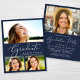 A simple and budget-friendly dark blue graduation party invitation featuring a 3 photo collage of the grad overlayed with "Graduate" in an elegant white script, and their name, class year and school in modern white lettering. Add an additional photo on the back and personalise your party details. This budget semi-gloss paper is similar in weight to photo paper -- a larger traditional card stock version is also available (message us for the link).