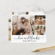 Budget, Modern, Elegant, Hand Lettered Wedding (3) Three Photo Collage Thank You Card. Stylish wedding thank you template featuring three photo on the front and one photo on the back. With the text "Love and thanks" in a swirly hand lettered typography script font with swashes in black colour on white background. Little heart between the names. Add your custom name and thank you message. If you prefer to handwrite your note, just delete the sample text to make more space.