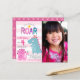 “Stomp, chomp and roar”. Here’s a great way to celebrate your child’s birthday with friends and family. Send out this cute, fun, simple, festive, modern, personalised budget photo birthday party invitation. A fun, whimsical, playful visual of a cute, bold, kawaii, pink brontosaurus, turquoise blue t-rex, and fun, handwritten typography over a light pink and white striped background on the left hand side, and the photo of your choice on the right, announces your daughter’s birthday party. An adorable pink crown pattern overlaying dusty rose pink is on the back. This charming invitation is guaranteed to set just the right tone for your event! This charming invitation is guaranteed to set just the right tone for your event! Matching and coordinating plates, napkins, stickers, thank you notes and other birthday goodies are also available in this special and fun collection.